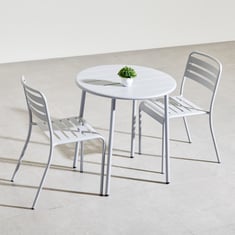Create a space to relax and unwind on your balcony, patio, or garden with this set. Crafted from high-quality, non-magnetic mild steel, this set features a roundtop table with a slat-like design. The matching chairs come with medium back and can support up to 110kgs.